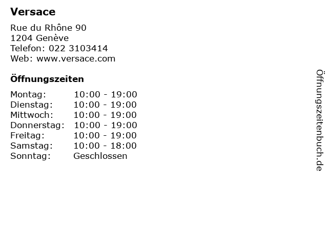 | Öffnungszeiten Versace in Genève anzeigen | |