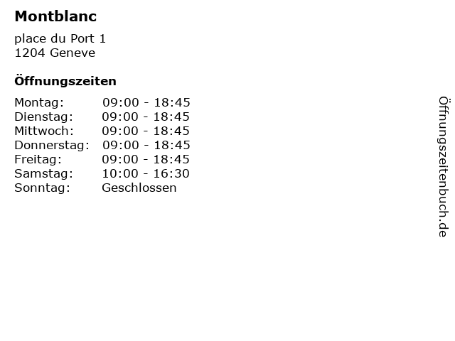 | Öffnungszeiten Montblanc in Geneve anzeigen | |