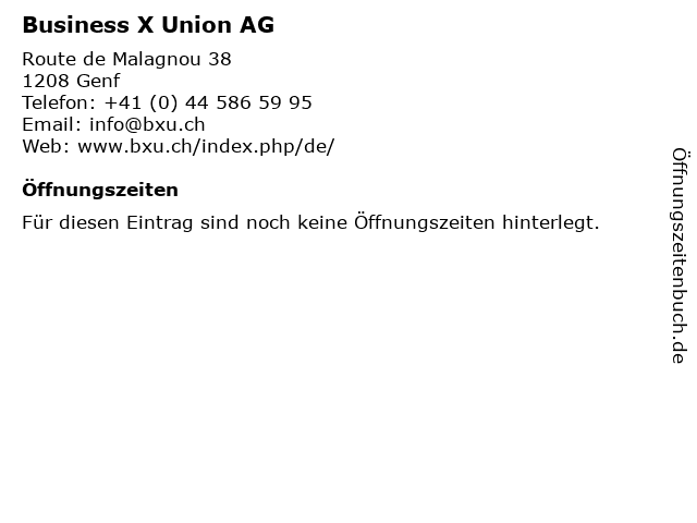 | Öffnungszeiten Business X Union AG in Genf anzeigen | |