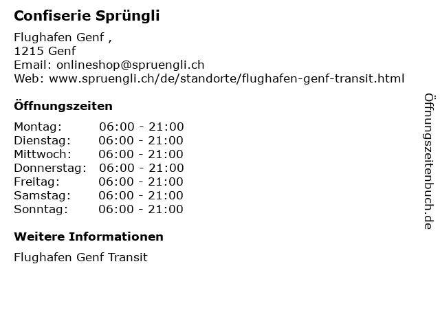 | Öffnungszeiten Confiserie Sprüngli in Genf anzeigen | |