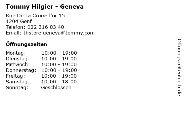 | Öffnungszeiten Tommy Hilgier - Geneva in Genf anzeigen | |