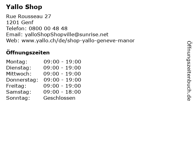 | Öffnungszeiten Yallo Shop in Genf anzeigen | |