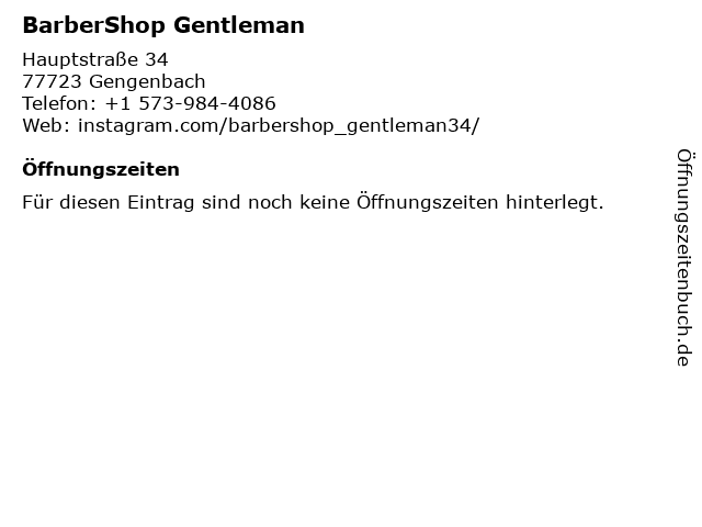 | Telefonnummer BarberShop Gentleman in Gengenbach (+1 573-984-4086) anrufen | |
