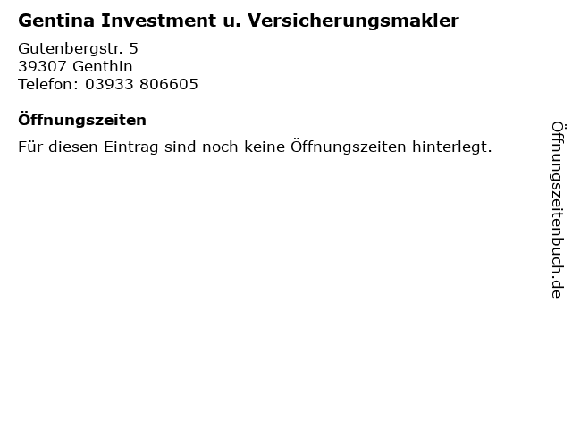 | Gentina Investment u. Versicherungsmakler anrufen | |