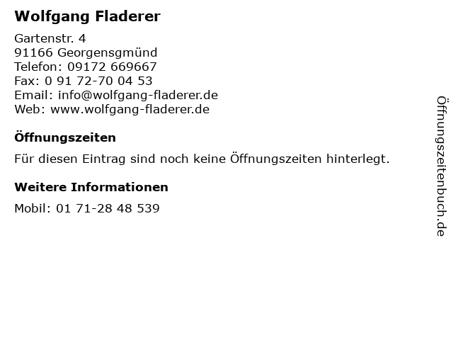 | Öffnungszeiten Wolfgang Fladerer in Georgensgmünd anzeigen | |