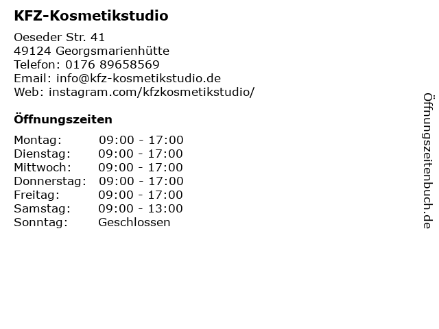 | Öffnungszeiten KFZ-Kosmetikstudio in Georgsmarienhütte anzeigen | |