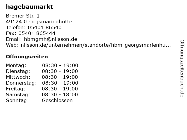 | Öffnungszeiten hagebaumarkt in Georgsmarienhütte anzeigen | |