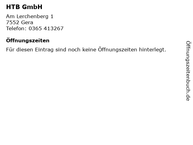 | Öffnungszeiten HTB GmbH in Gera anzeigen | |