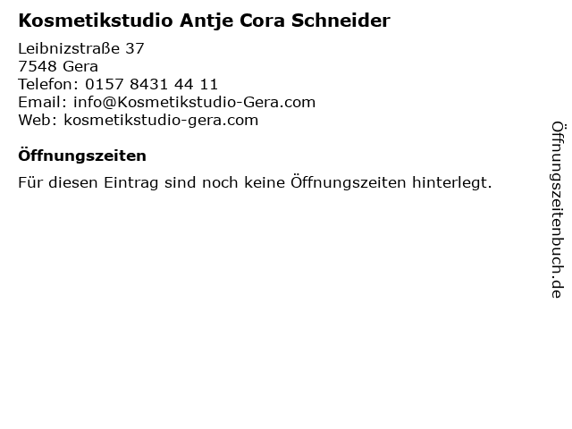 | Kosmetikstudio Antje Cora Schneider anrufen | |