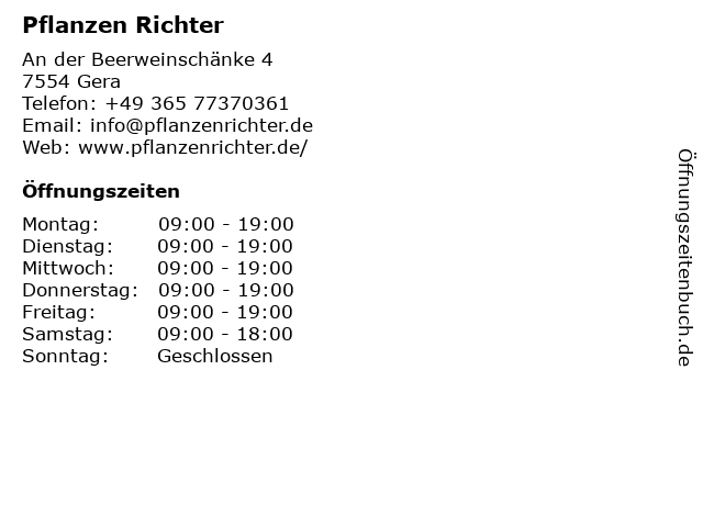| Öffnungszeiten Pflanzen Richter in Gera anzeigen | |