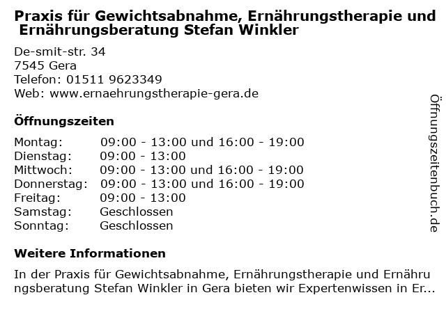 Branchen & Suchbegriffe zu Praxis für Gewichtsabnahme, Ernährungstherapie und Ernährungsberatung Stefan Winkler:ernährungsberatung, ernährungstherapie, gewichtsabnahme, praxis, stefan, winkler |