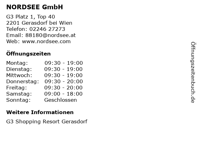 | Öffnungszeiten NORDSEE GmbH in Gerasdorf bei Wien anzeigen | |