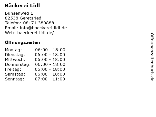Öffnungszeiten Bäckerei Lidl in Geretsried anzeigen | |