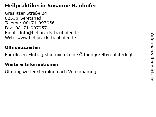 | Heilpraktikerin Susanne Bauhofer anrufen | |