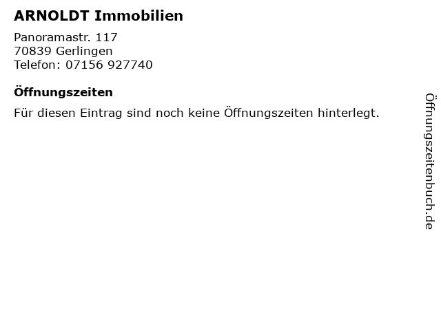 | Öffnungszeiten ARNOLDT Immobilien in Gerlingen anzeigen | |