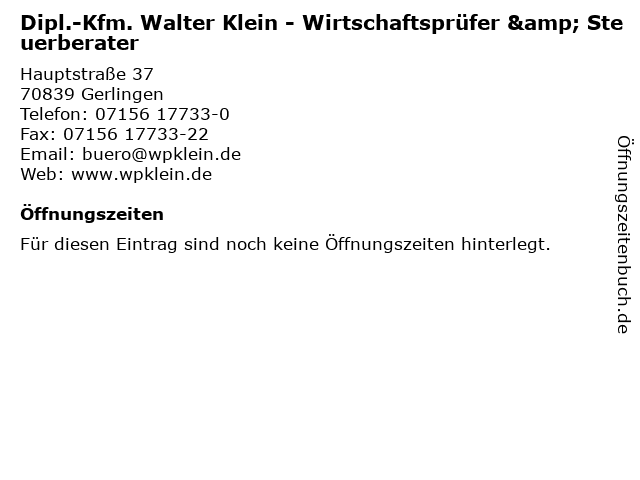 | Dipl.-Kfm. Walter Klein - Wirtschaftsprüfer & Steuerberater anrufen | |