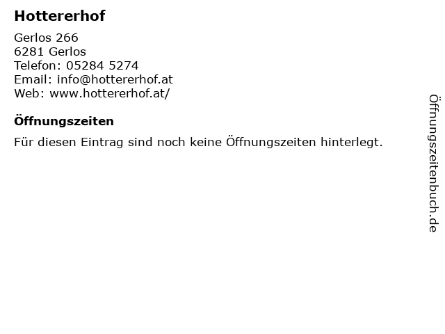 | Öffnungszeiten Hottererhof in Gerlos anzeigen | |