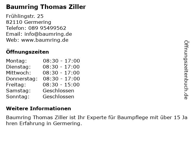 | Öffnungszeiten Baumring Thomas Ziller in Germering anzeigen | |