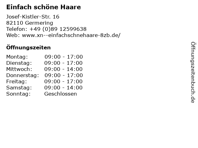 Öffnungszeiten Einfach schöne Haare in Germering anzeigen | |