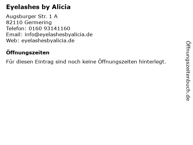 | Öffnungszeiten Eyelashes by Alicia in Germering anzeigen | |