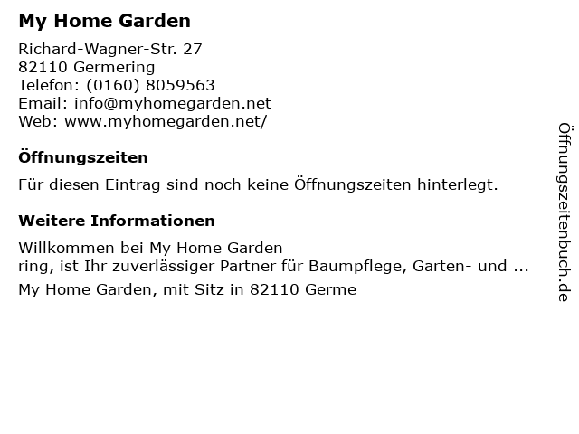 | Öffnungszeiten My Home Garden in Germering anzeigen | |