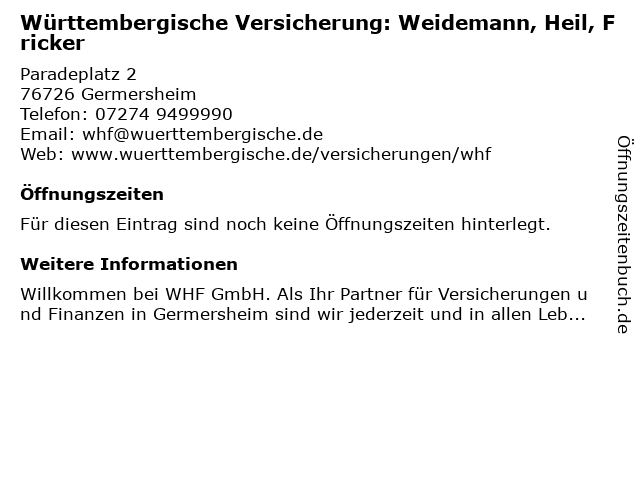 Branchen & Suchbegriffe zu Württembergische Versicherung: Weidemann, Heil, Fricker:fricker, heil, versicherung, weidemann, württembergische |
