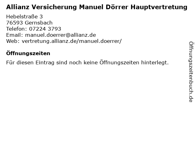 | Allianz Versicherung Manuel Dörrer Hauptvertretung anrufen | |