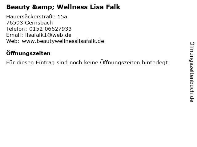 Branchen & Suchbegriffe zu Beauty & Wellness Lisa Falk:beauty, falk, hautpflege, kosmetik, lisa, schönheit, schönheitssalon, spa, wellness |