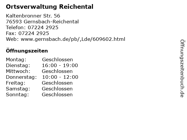 Branchen & Suchbegriffe zu Ortsverwaltung Reichental:amt, behörde, ortsverwaltung, reichental |