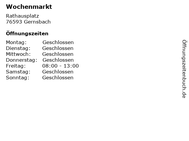 | Öffnungszeiten Wochenmarkt in Gernsbach anzeigen | |