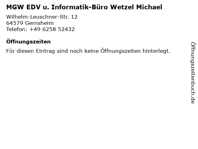 MGW EDV u. Informatik-Büro Wetzel Michael anrufen | |