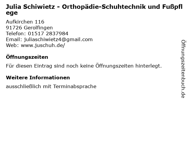 | Julia Schiwietz - Orthopädie-Schuhtechnik und Fußpflege anrufen | |