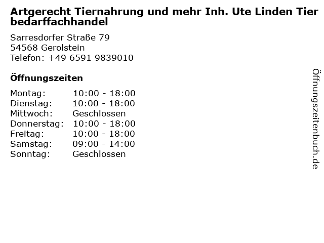 Branchen & Suchbegriffe zu Artgerecht Tiernahrung und mehr Inh. Ute Linden Tierbedarffachhandel:artgerecht, linden, mehr, tierbedarffachhandel, tiernahrung, ute, zoologischer bedarf |
