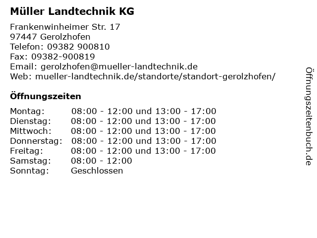 | Öffnungszeiten Müller Landtechnik KG in Gerolzhofen anzeigen | |