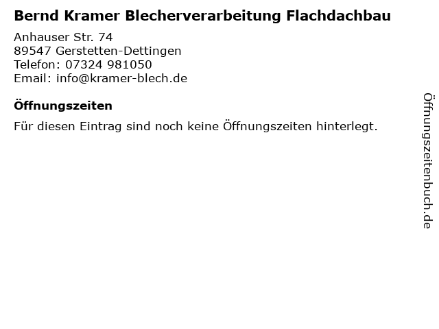 | Bernd Kramer Blecherverarbeitung Flachdachbau anrufen | |