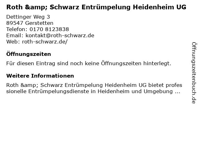 Öffnungszeiten Roth & Schwarz Entrümpelung Heidenheim UG
