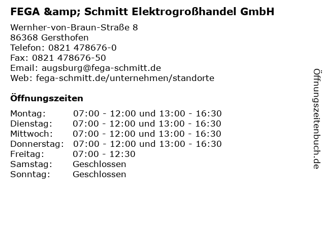 Branchen & Suchbegriffe zu FEGA & Schmitt Elektrogroßhandel GmbH:datentechnik, elektrogroßhandel, erneuerbare energien, fega, hausgeräte, haustechnik, installationsmaterial, kabel, konsumartikel, leitungen, multimedia, netzwerktechnik, niederlassung, schmitt |