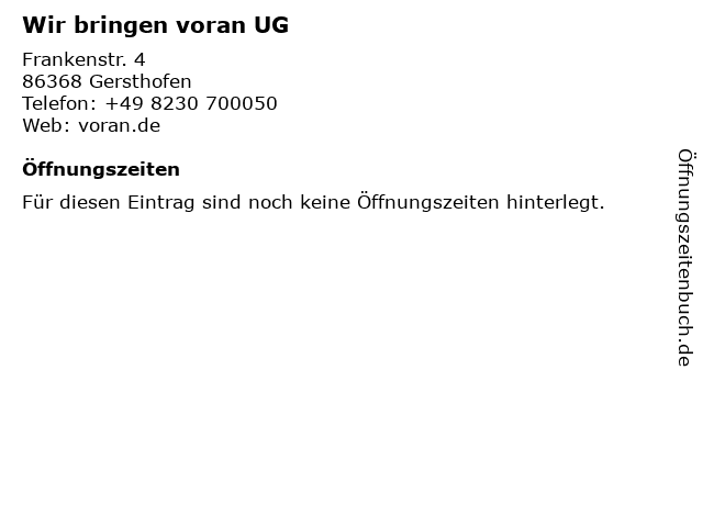 | Öffnungszeiten Wir bringen voran UG in Gersthofen anzeigen | |