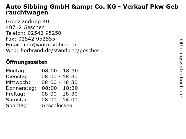 2 Auto Sibbing GmbH & Co. KG - Ersatzteile, Zubehör & Collection (Entfernung: 0,00 km) Grenzlandring 40, 48712 Gescher 3 Auto Sibbing GmbH & Co. KG - Service Transporter & LKW (Entfernung: 0,07 km) Grenzlandring 40, 48712 Gescher 4 Autohaus Wilkes GmbH & Co. KG - Neuwagen / Gebrauchtwagen (Entfernung: 4,70 km) Breul 67, 48703 Stadtlohn 6 |
