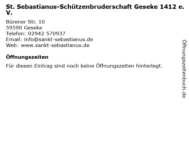 | St. Sebastianus-Schützenbruderschaft Geseke 1412 e.V. anrufen | |