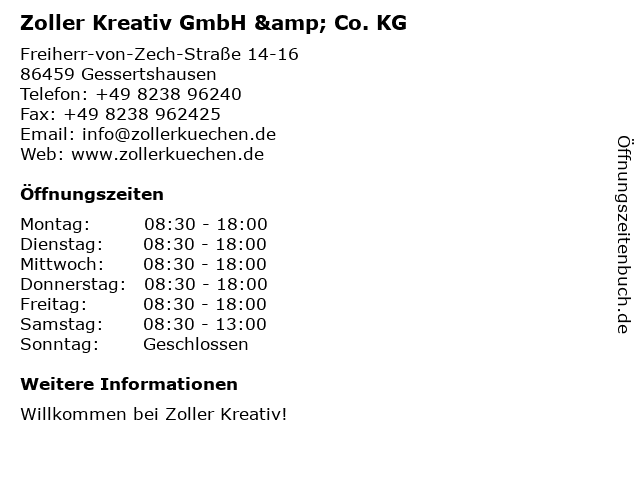 1 Zoller Kreativ GmbH & Co. KG (Entfernung: 0,00 km) Freiherr-von-Zech-Str. 14 -16, 86459 Gessertshausen 5 Küchen-Möbel An- & Verkauf, Gebraucht & Neu, Oleg Rutz (Entfernung: 11,04 km) Hessenbachstr. 35, 86157 Augsburg 6 Aloisia Reisinger Küchen- & Einrichtungsberatung (Entfernung: 12,31 km) Peter-Dörfler-Str. 10, 86368 Gersthofen |