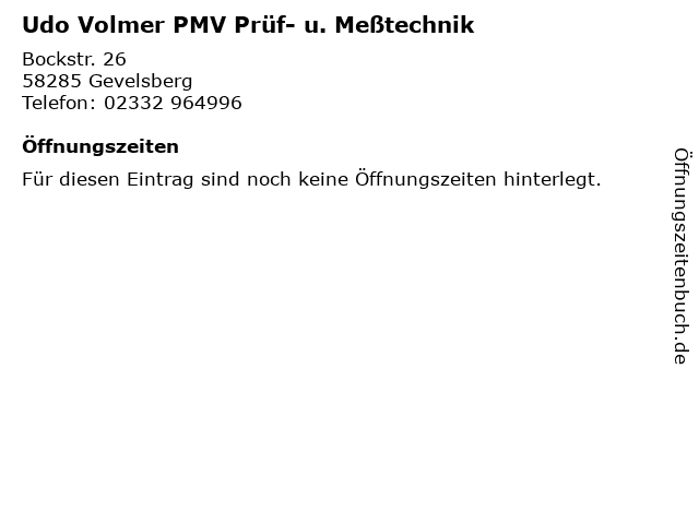 | Udo Volmer PMV Prüf- u. Meßtechnik anrufen | |