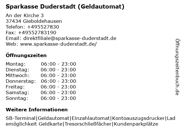Branchen & Suchbegriffe zu Sparkasse Duderstadt (Geldautomat):duderstadt, geldautomat, sparkasse |