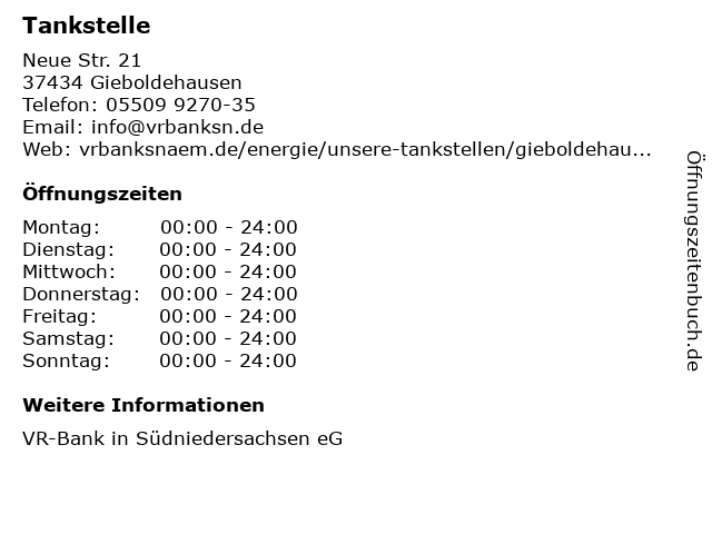 | Öffnungszeiten Tankstelle in Gieboldehausen anzeigen | |