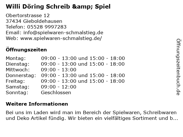 Branchen & Suchbegriffe zu Willi Döring Schreib & Spiel:döring, schreib, schreibwarenladen, spiel, willi |