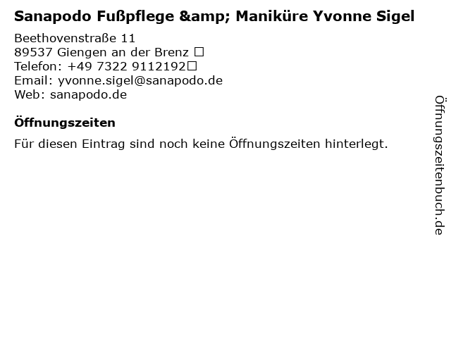 | Sanapodo Fußpflege & Maniküre Yvonne Sigel anrufen | |