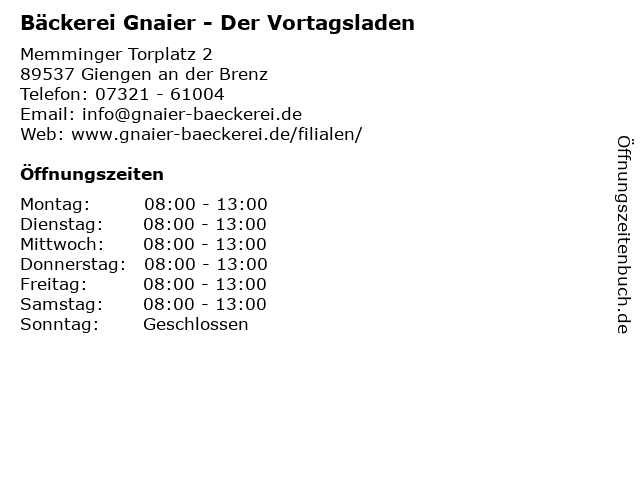 Branchen & Suchbegriffe zu Bäckerei Gnaier - Der Vortagsladen:brot, brötchen, bäckerei, gnaier, konditorei, kuchen, vortagsladen |