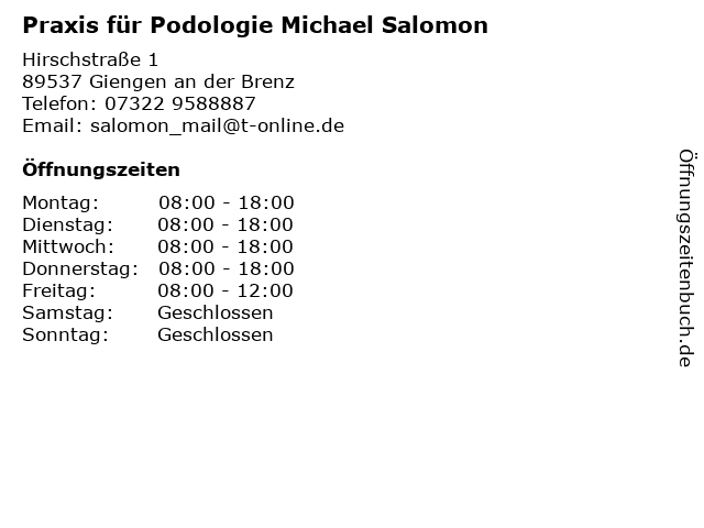 Branchen & Suchbegriffe zu Praxis für Podologie Michael Salomon:michael, podologie, praxis, salomon |