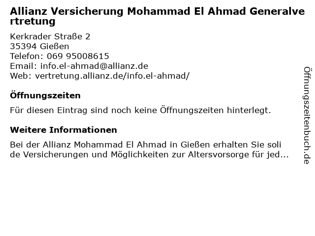 | Allianz Versicherung Mohammad El Ahmad Generalvertretung anrufen | |