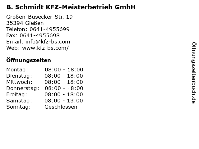 Branchen & Suchbegriffe zu B. Schmidt KFZ-Meisterbetrieb GmbH:abgasuntersuchung, b., hauptuntersuchung, inspektion, instandsetzung, kfz, meisterbetrieb, reifenservice, reparatur, schmidt, unfallinstandsetzung, ölwechsel |